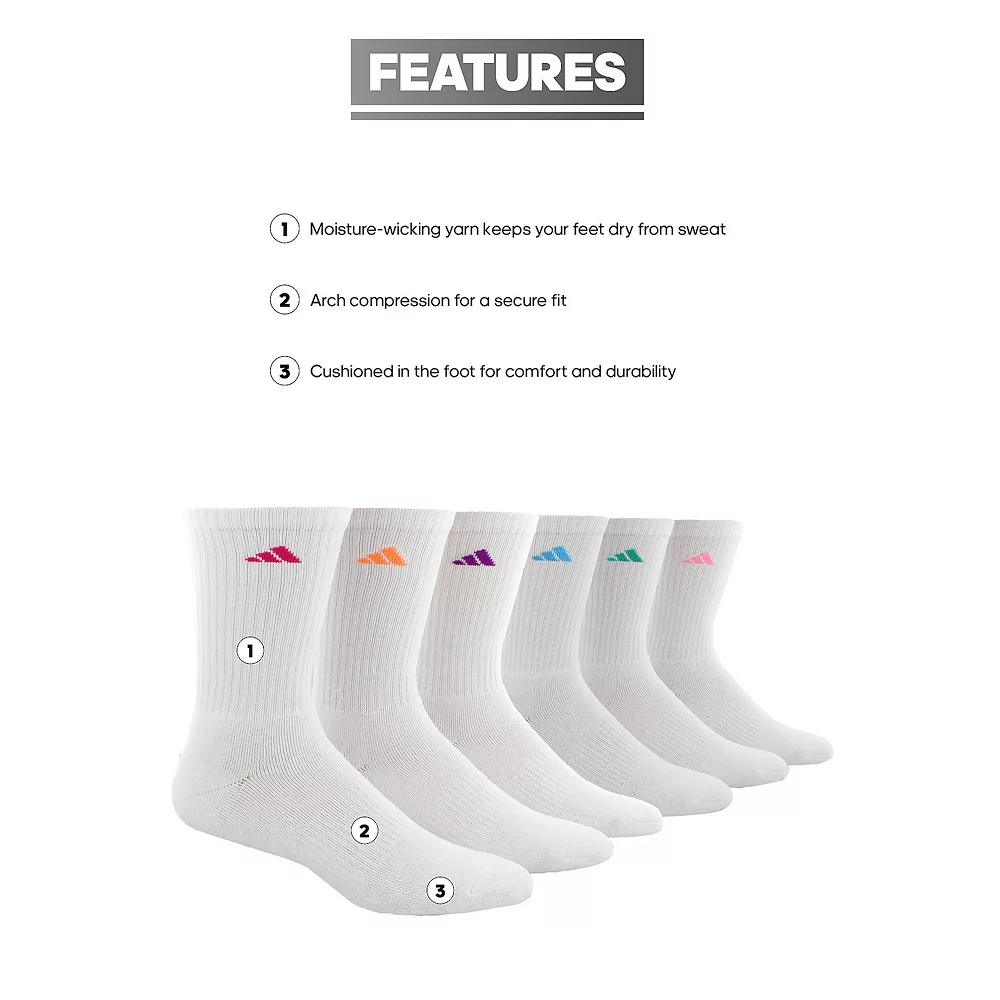 With moisture-wicking yarn and arch compression, these crew-length adidas socks keep you comfortable however you move.