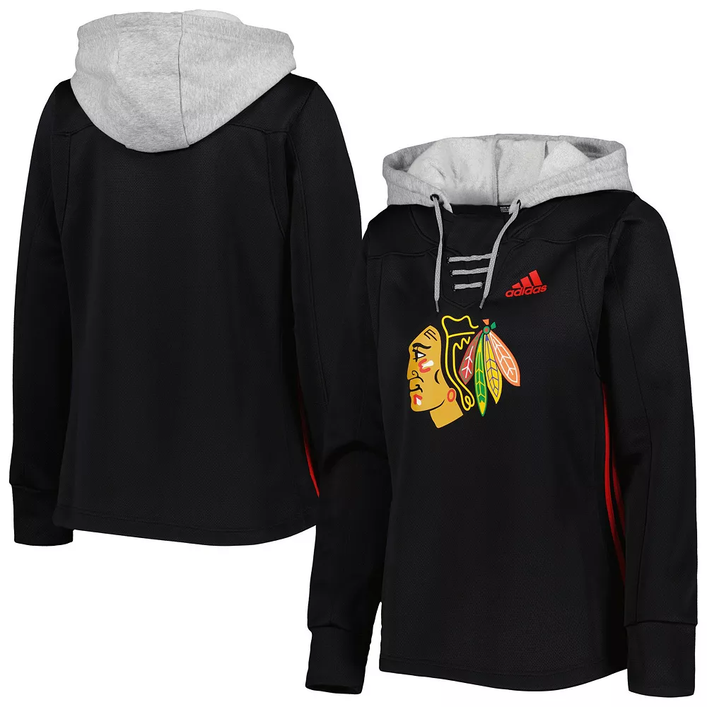 Show your dedication to the Chicago Blackhawks with this Skate Lace hoodie. Featuring high-performance Primeblue fabric, this adidas pullover keeps you comfortable no matter how much the on-ice action heats up. Crafted with a blend of cotton and recycled polyester, this hoodie is an eco-friendly way to support your Chicago Blackhawks.